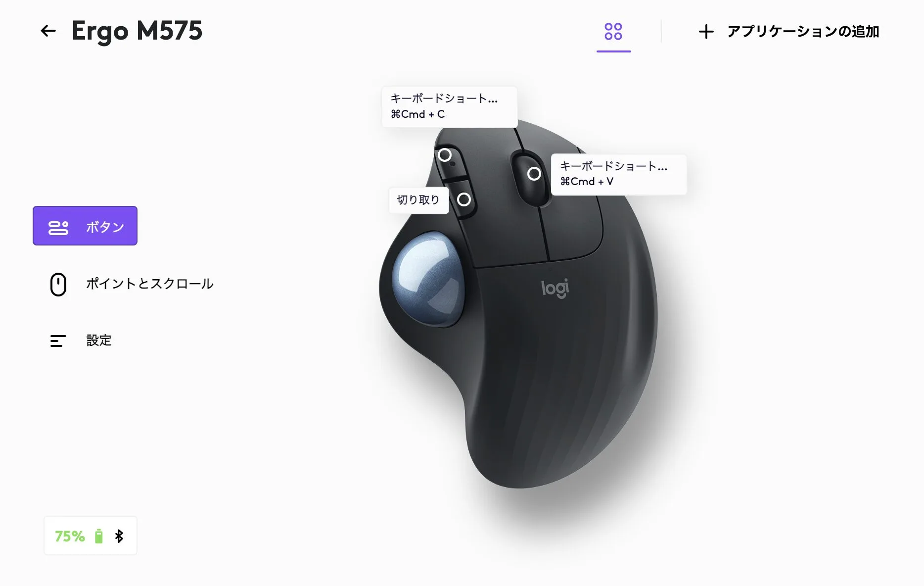 ロジクールERGOM575は、Logi Options+でボタンを割り振りできます。
