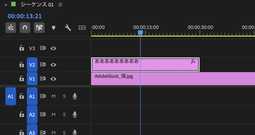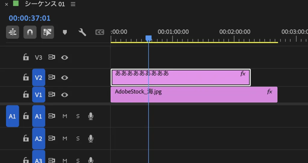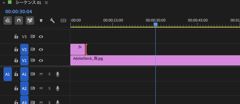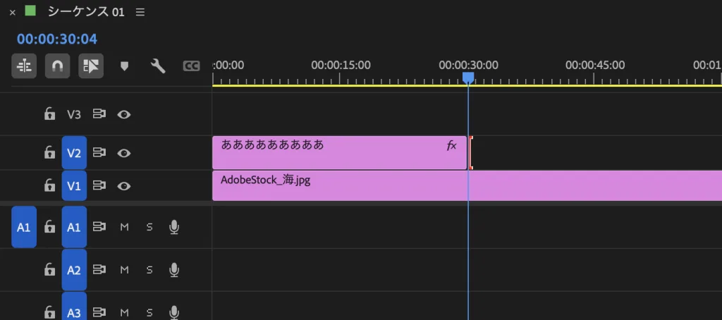「上書き」は、SEや画像素材などをドラッグ&ドロップではなく、一発でシーケンスの再生ヘッドの位置に挿入できるショートカットです。