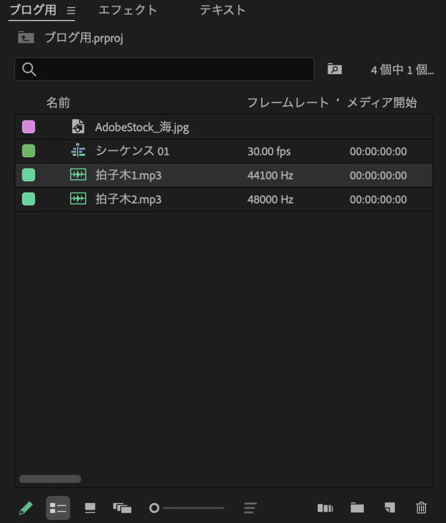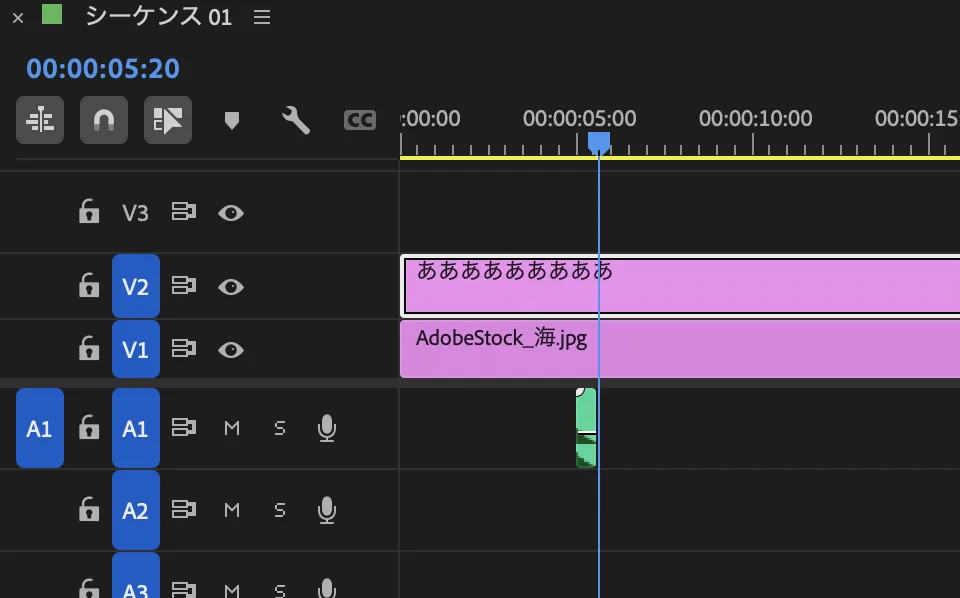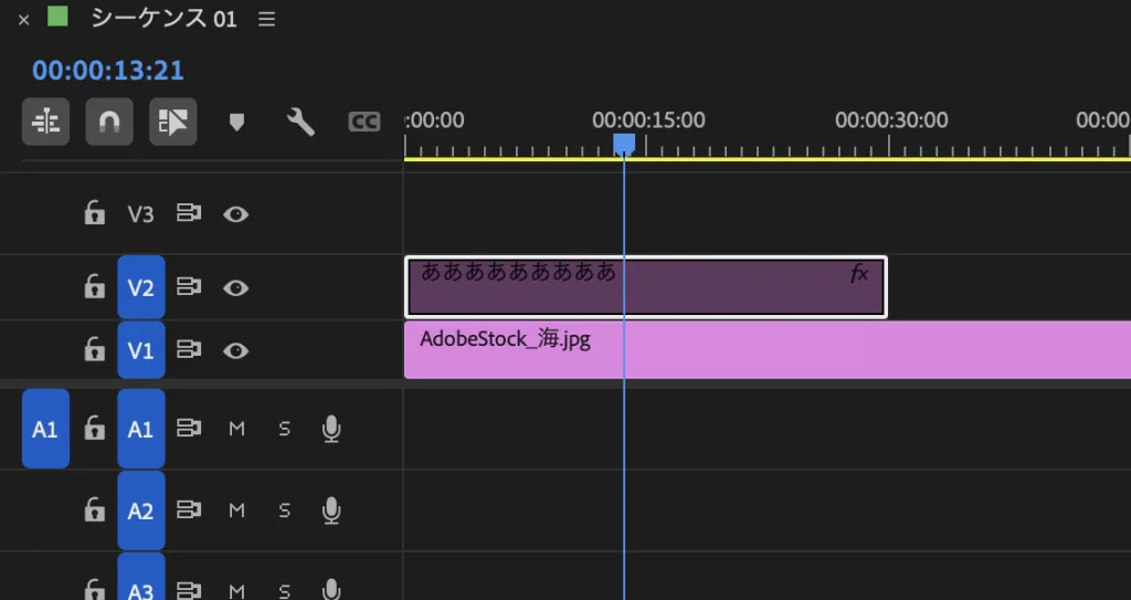 「上書き」は、SEや画像素材などをドラッグ&ドロップではなく、一発でシーケンスの再生ヘッドの位置に挿入できるショートカットです。